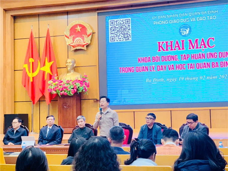 Khoá bồi dưỡng vinh dự đón sự có mặt của đại diện lãnh đạo Sở GD và ĐT Hà Nội, các chuyên gia CNTT, đông đảo học viên là cán bộ quản lý giáo dục, giáo viên, nhân viên đến từ các trường học trên địa bàn quận Ba Đình. Trong đó có cán bộ, giáo viên của trường Mẫu giáo Số 5. Đây là lớp đầu tiên trong chuỗi các chương trình bồi dưỡng ứng dụng CNTT do phòng GD và ĐT quận Ba Đình tổ chức trong năm 2025.
