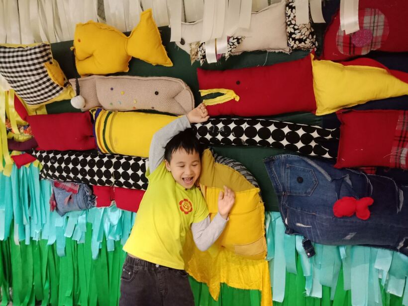 Phòng tái chế vải đầy sắc màu và êm ái.