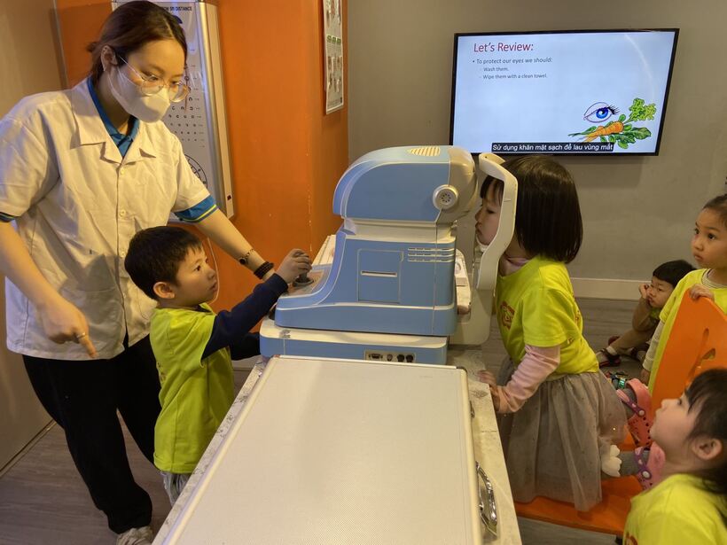 Giữ yên nhé, để tớ khám mắt cho cậu!