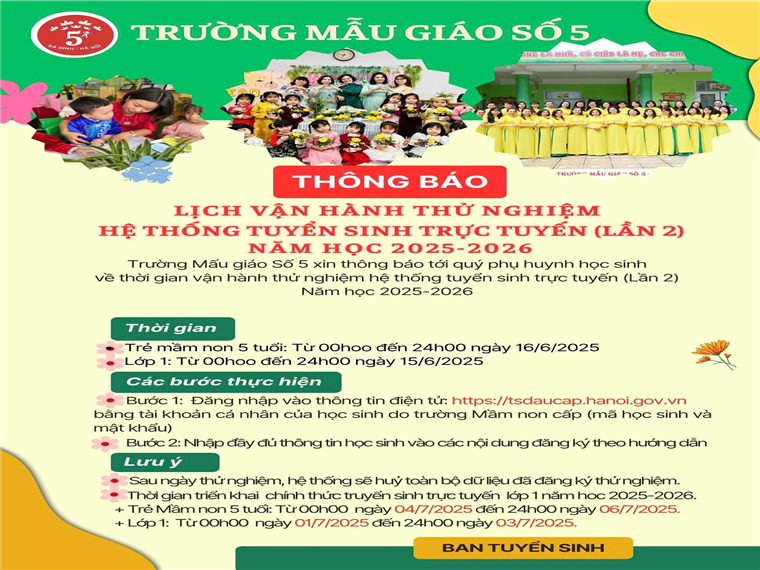 Thông báo về lịch vận hành thử nghiệm hệ thống tuyển sinh trực tuyến (Lần 2) năm học 2025-2026.