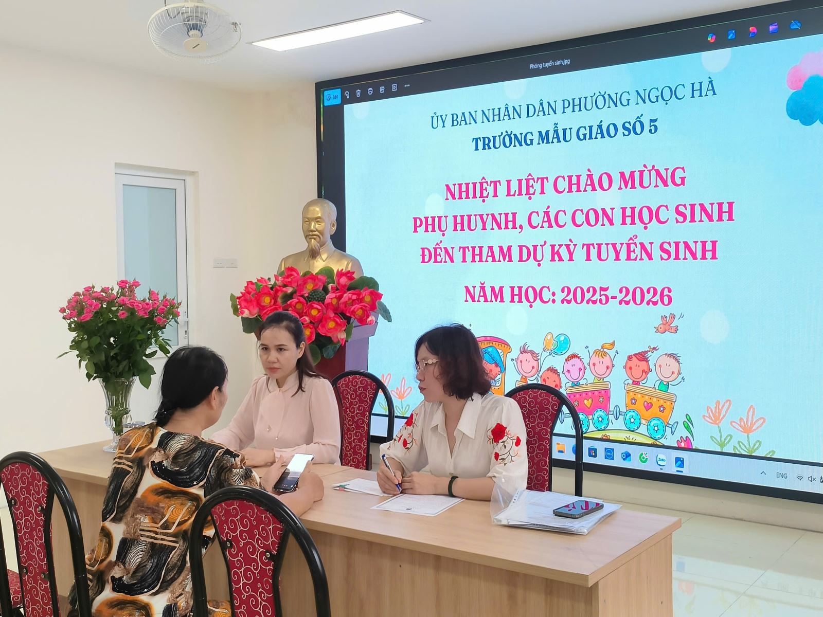 Theo thông báo tuyển sinh, trường Mẫu Giáo Số 5 tổ chức tiếp nhận hồ sơ trực tiếp từ ngày 14/7/2025 đến hết ngày 18/7/2025 (từ 8h00 đến 11h30 và từ 14h30 đến 16h00) đối với các bé đang sinh sống trên địa bàn phường. Phụ huynh có thể đăng ký trực tuyến trước tại website: mgso5.badnh.edu.vn hoặc đến trực tiếp trường để được hướng dẫn.